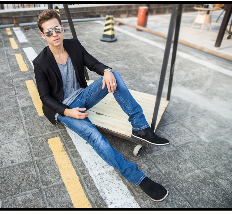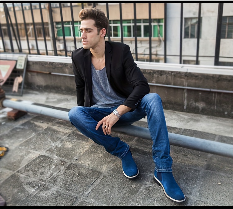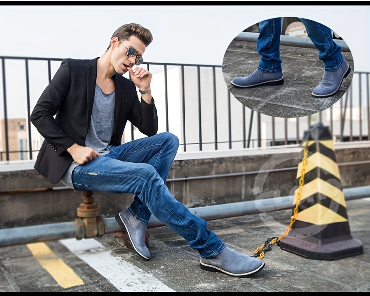 Men's Boots - Upper, Rubber Sole, Slip-On Ankle Boots in Black, Blue, or Gray