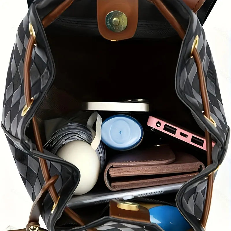 Backpack for Women - Coffee Brown & Black Color Block Design with Golden Buckle, Adjustable Shoulder Straps,- Perfect for Work, Travel